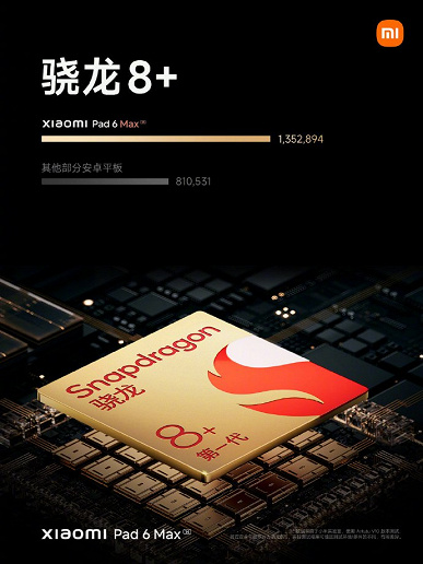 В качестве аппаратной основы Xiaomi Pad 6 Max выбрана проверенная временем платформа Snapdragon 8+ Gen 1 от компании Qualcomm с системой охлаждения площадью 15 839 мм², которая дополнена скоростной оперативкой LPDDR5X и флеш-накопителями стандарта UFS 3.1.