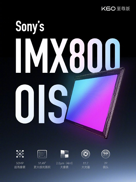 В основной камере Redmi K60 Ultra применён 50-мегапиксельный датчик изображения Sony IMX800, который дополнен комбинированной системой стабилизации – оптической и электронной.