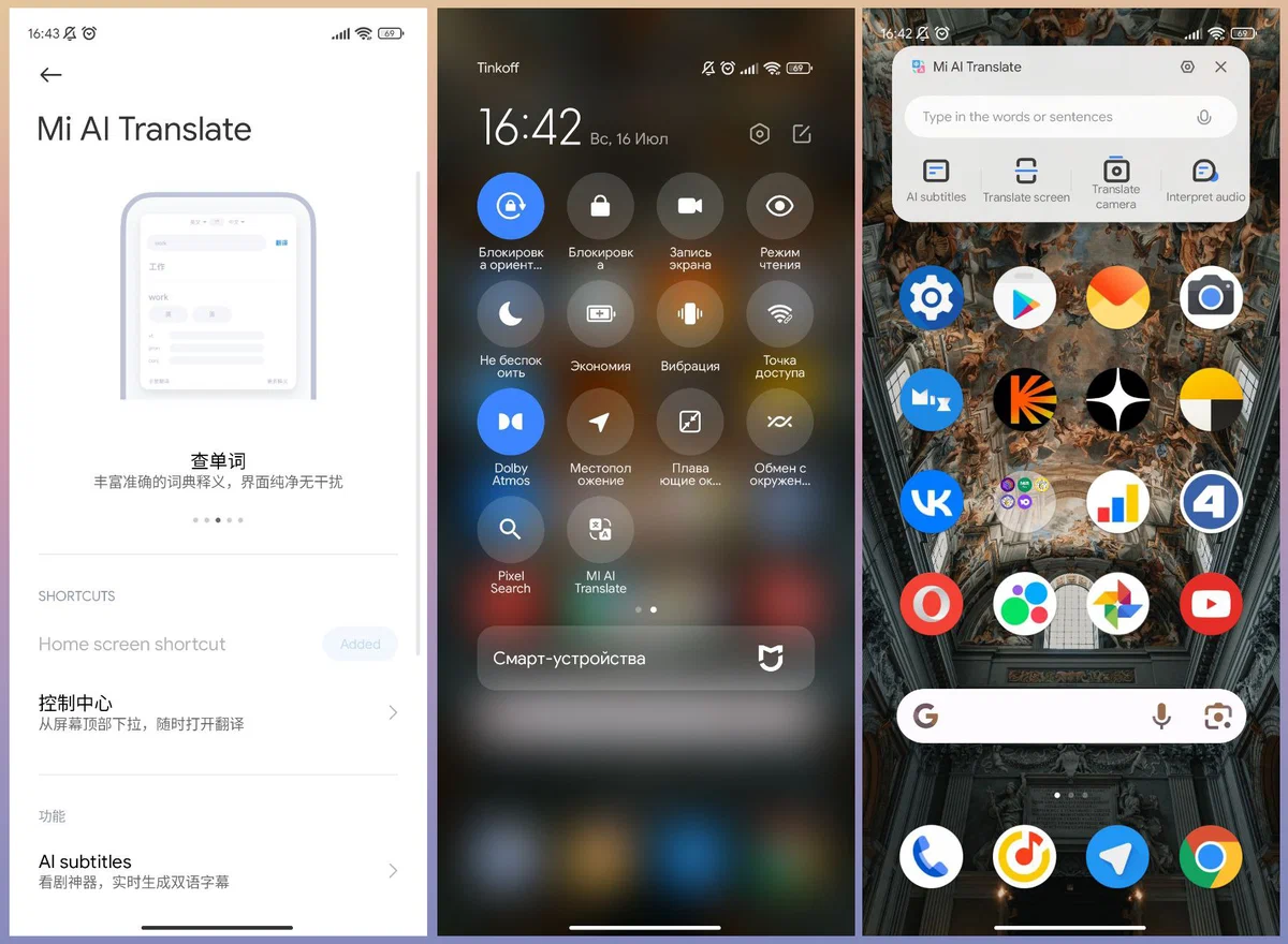 Ещё одним достаточно интересным нововведением в MIUI 15 стала возможность установить и затем добавить в шторку приложение Mi Ai Translate, которое представляет собой переводчик на базе алгоритмов ИИ.