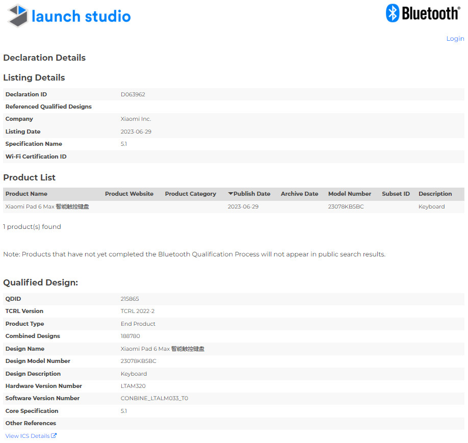 Пару дней назад в базе данных Bluetooth SIG появился любопытный продукт компании Xiaomi — речь идёт об «умной сенсорной клавиатуре» для планшетного компьютера со скромным названием Xiaomi Pad 6 Max.